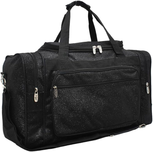 20" Pink & Black Glitter Cheer Duffle Bag Soft Canvas with Zip Pockets & Double Handles