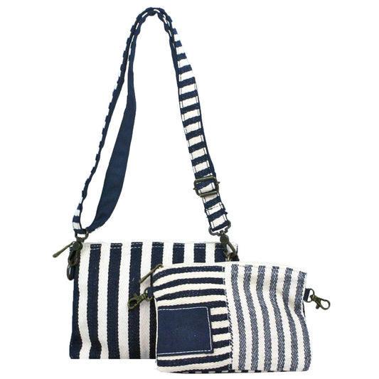 Navy Stripe Boho Crossbody Bag with Removable Front Pouch