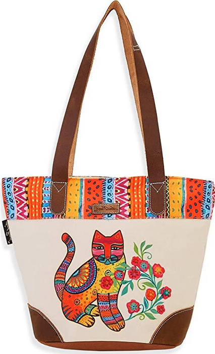 Step out with a touch of artistic elegance with the Laurel Burch Maya Small Leather Handle Tote Bag. Featuring Laurel Burch's iconic designs, this tote bag is a beautiful blend of functionality and vibrant art. The leather handles add a sophisticated touch, making it a versatile accessory for any occasion.